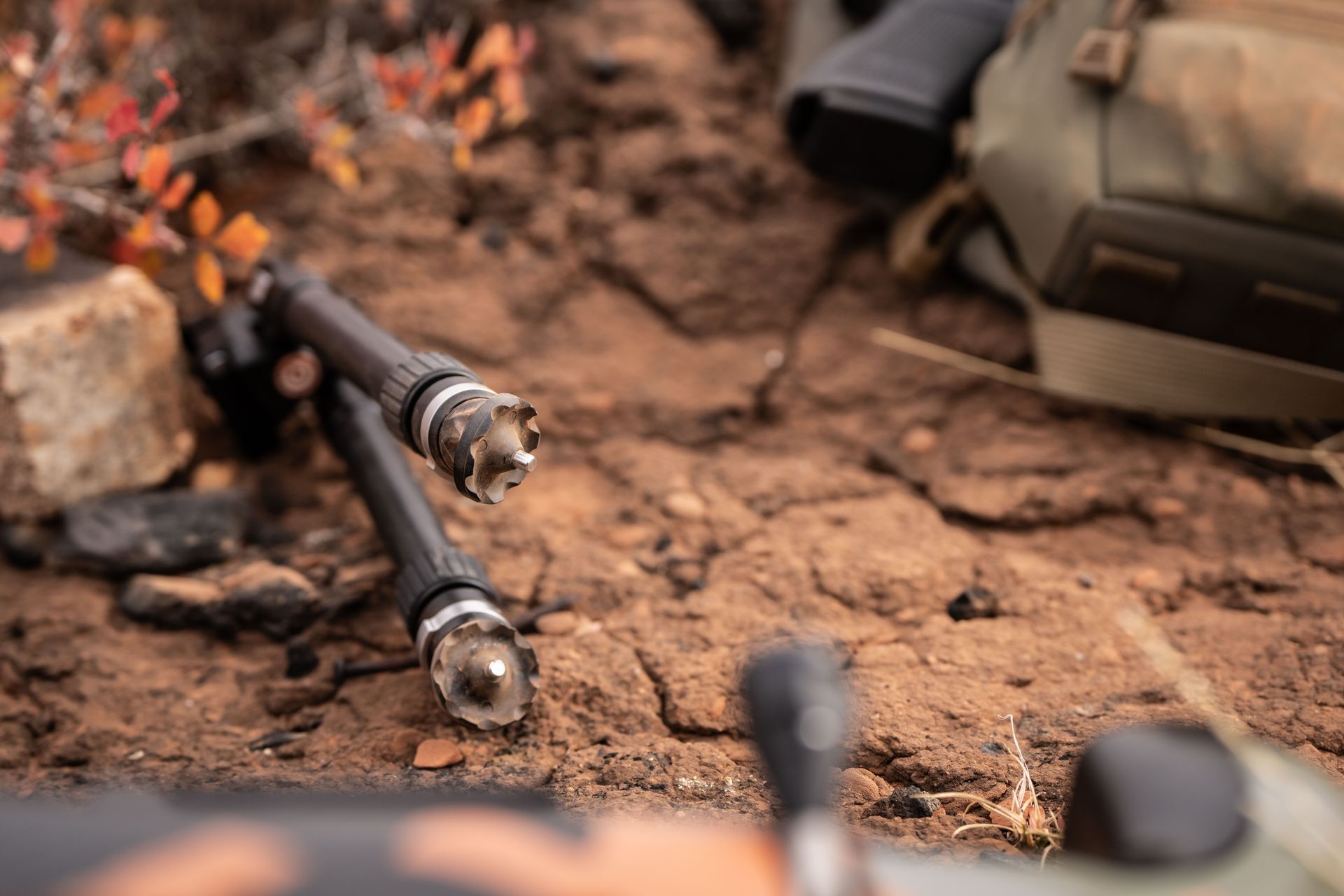 Note: Spike feet are not recommended for shooting from a bench or hard/smooth surfaces. For this type of shooting, we strongly recommend the standard rubber feet included with the Gunwerks Elevate Bipod.